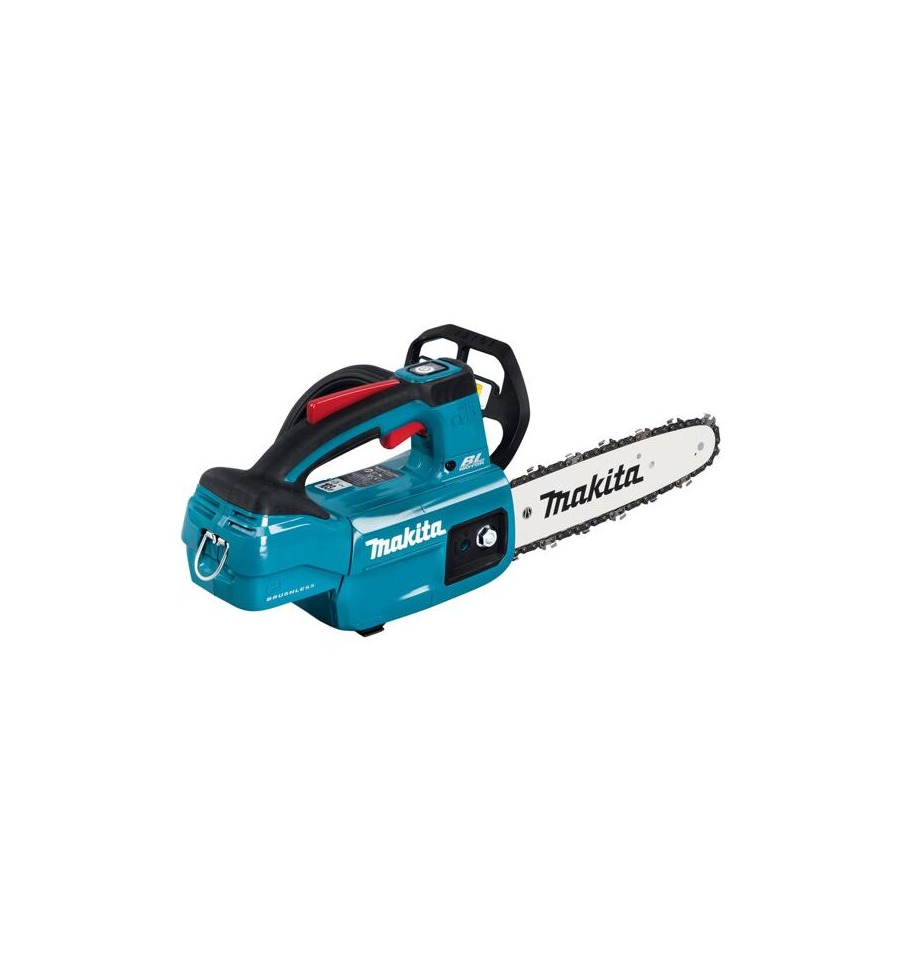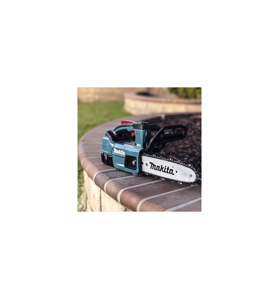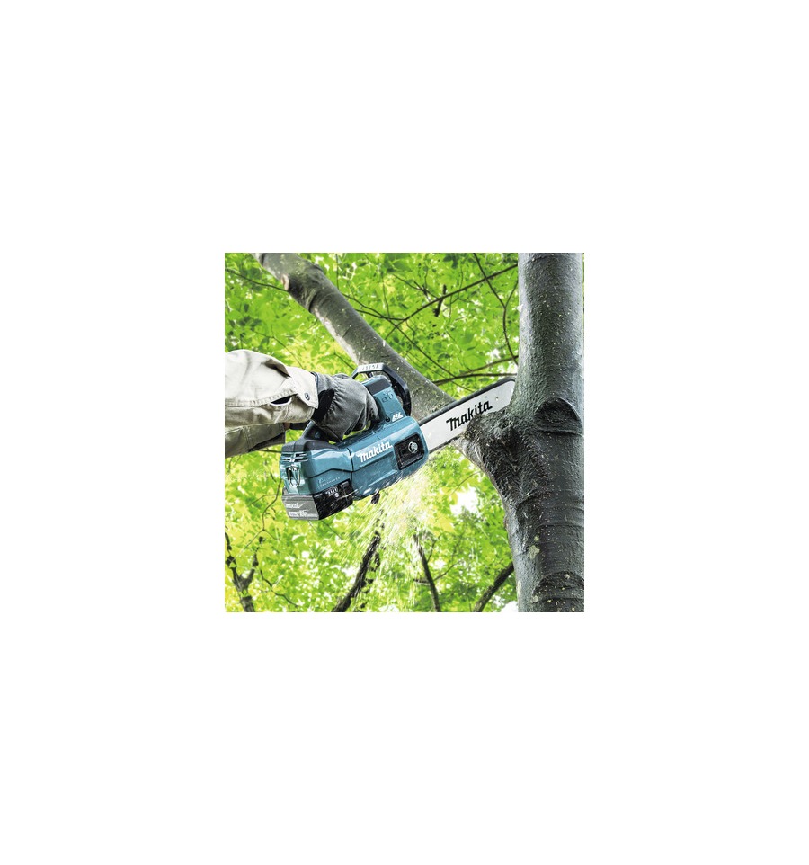 Aku řetězová pila MAKITA DUC306ZB • 2 x 18 V Li-ion • rychlost řetězu 20 m/s • délka lišty 30 cm • rozteč řetězu 3/8" • hmotnost 3,4 kg.