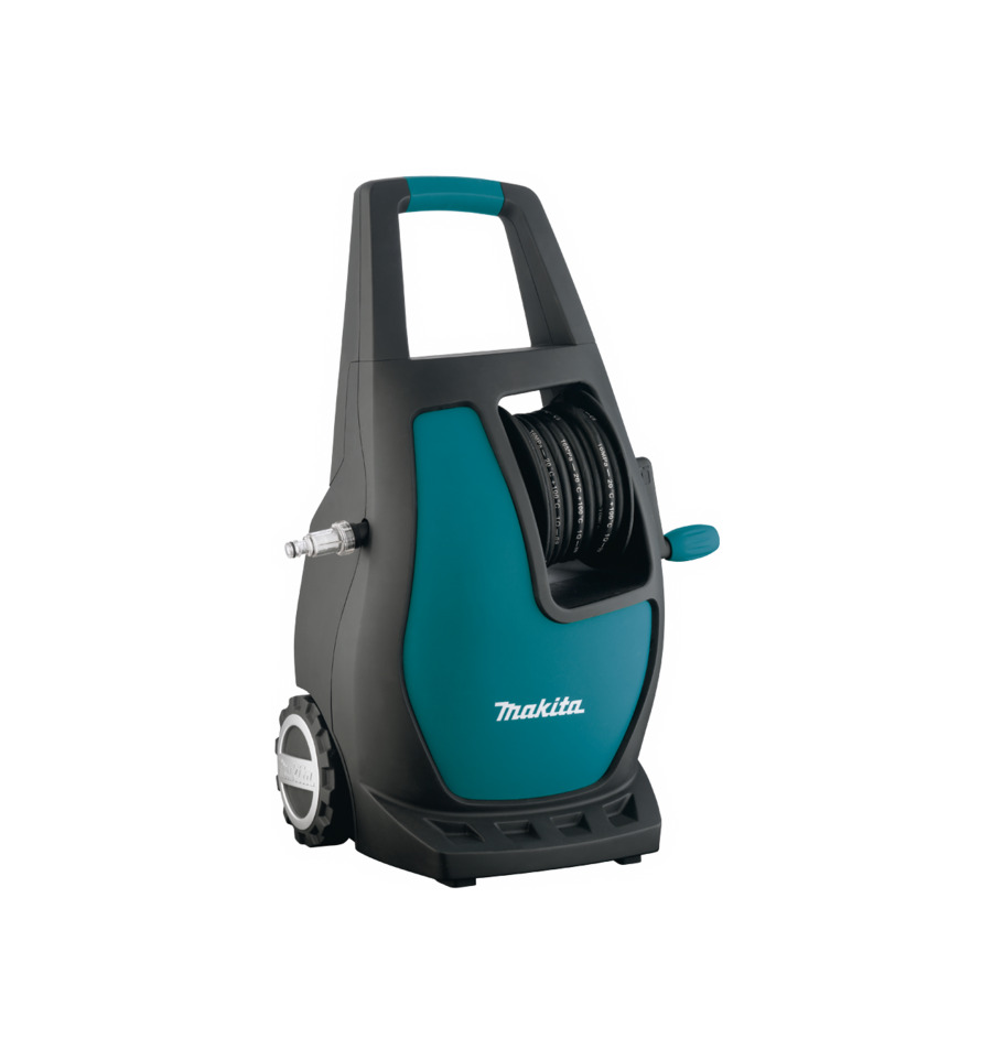 Vysokotlaký čistič Makita HW1300 s příkonem 1800 W, max. tlakem 130 bar a průtokem 360l/h je opatřen navíjecím bubnem. Možnost nastavení 2 typů tlaku (High/Low) podle typu prováděné práce.