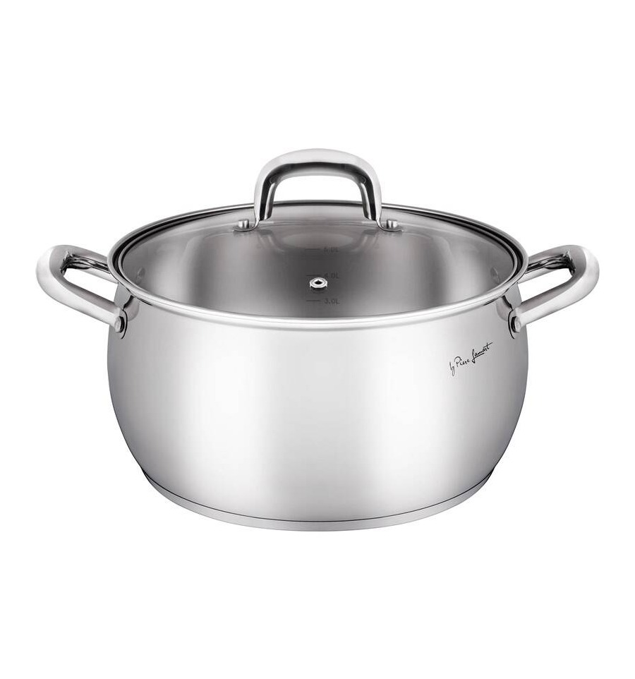 Kastrol s poklicí Lamart LT1161 • materiál: nerezová ocel • průměr 22 cm • objem 4,5 l • elegantní rukojeti • vhodné pro všechny typy sporáků včetně indukce • lze mýt v myčce nádobí • výška 12,5 cm
