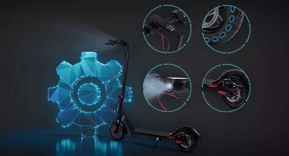 Velké 8,5" perforované pneumatiky se pyšní výborným tlumením, takže vaši jízdu nebudou rušit ani kamínky na silnici. K bezpečnosti přispívá duální brzdový systém, který kombinuje elektrické brzdění motorem a mechanickou kotoučovou brzdu. Nechybí ani červené výstražné světlo na zadním nárazníku, které začne blikat, jakmile šlápnete na brzdu.