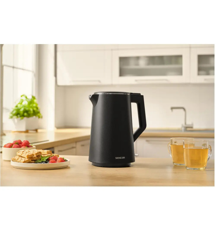 Příkon 2000 W Kovová rychlovarná konvice se skrytým topným tělesem Kapacita na 1,7 l Základna otočná o 360° Lakovaný vnější povrch