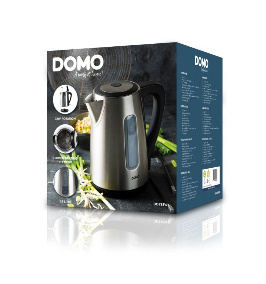 Rychlovarná konvice DOMO DO496WK o příkonu 2200 W v moderním nerezovém provedení s velkým objemem 1,7 litru.