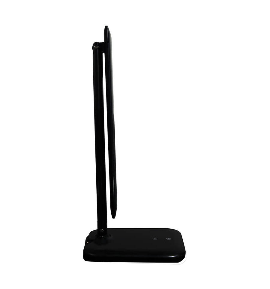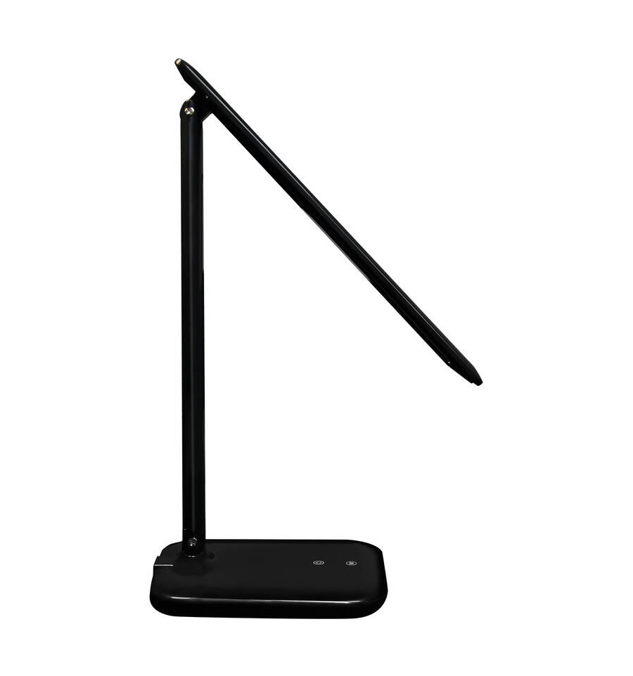 Stolní LED lampička je vyrobena z plastu a gumy. Lampa má nastavitelné rameno, díky němuž je možné stínidlo otočit dle potřeby.